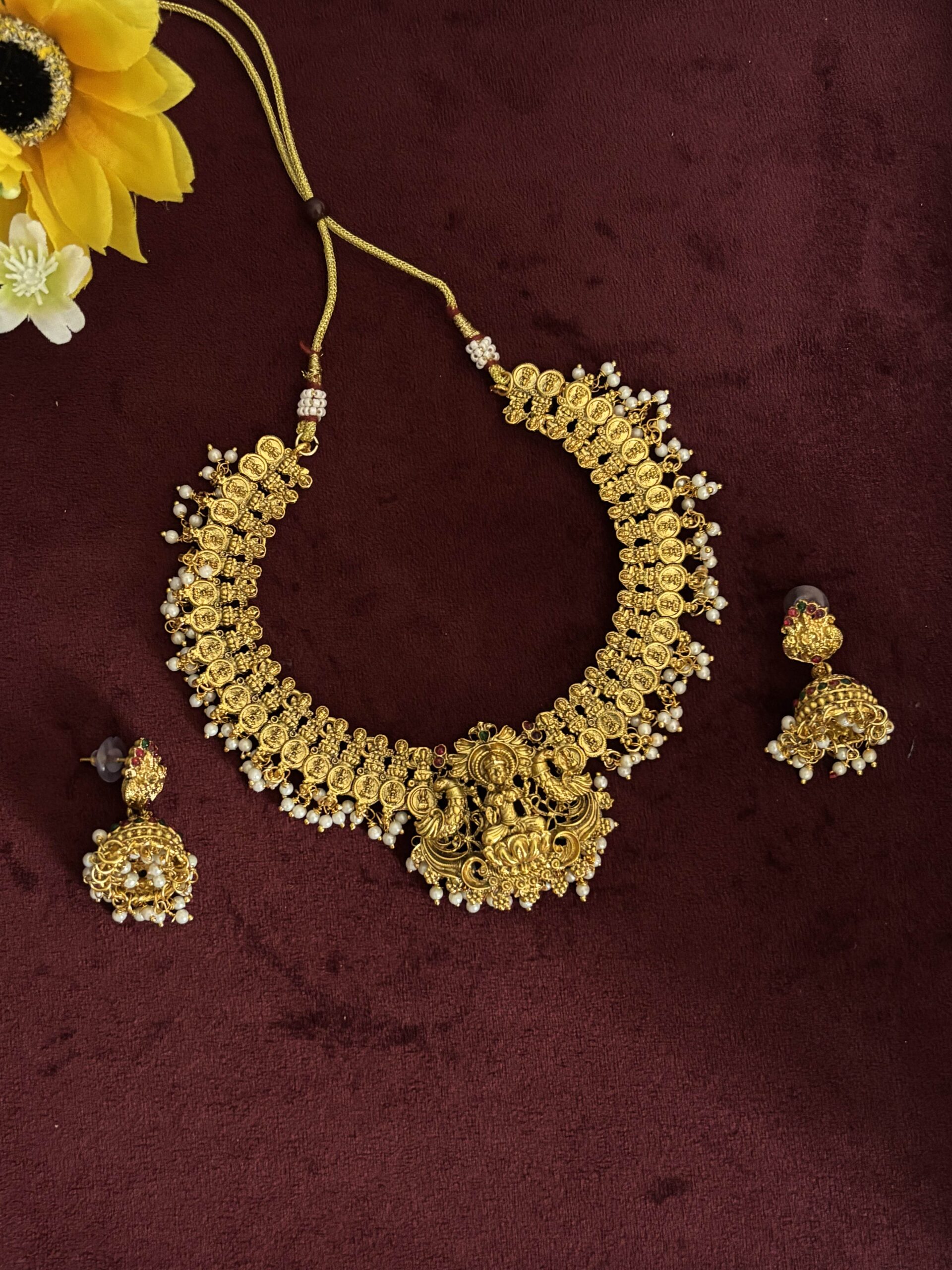 Temple Lakshmi Coin Necklace Set