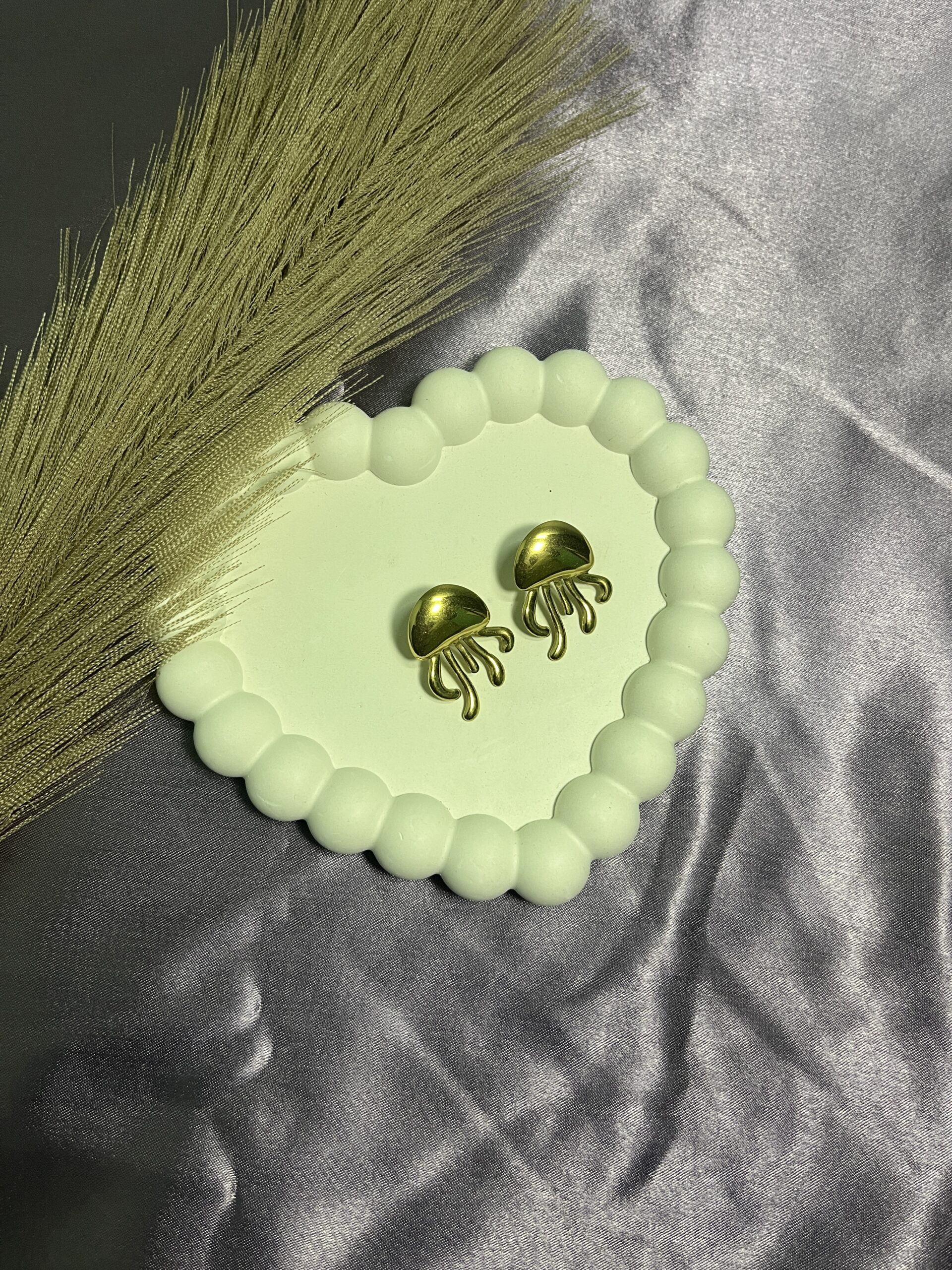 Dive into a playful, aquatic aesthetic. These Whimsical Jellyfish Stud Earrings feature a charming, sculpted design with a polished dome bell and flowing tentacles. The bold, unique shape adds a delightful, unexpected element to your ear stack. Crafted with anti-tarnish gold-plated metal, they ensure a durable, shiny finish that lasts longer than a day at the beach.GT00049